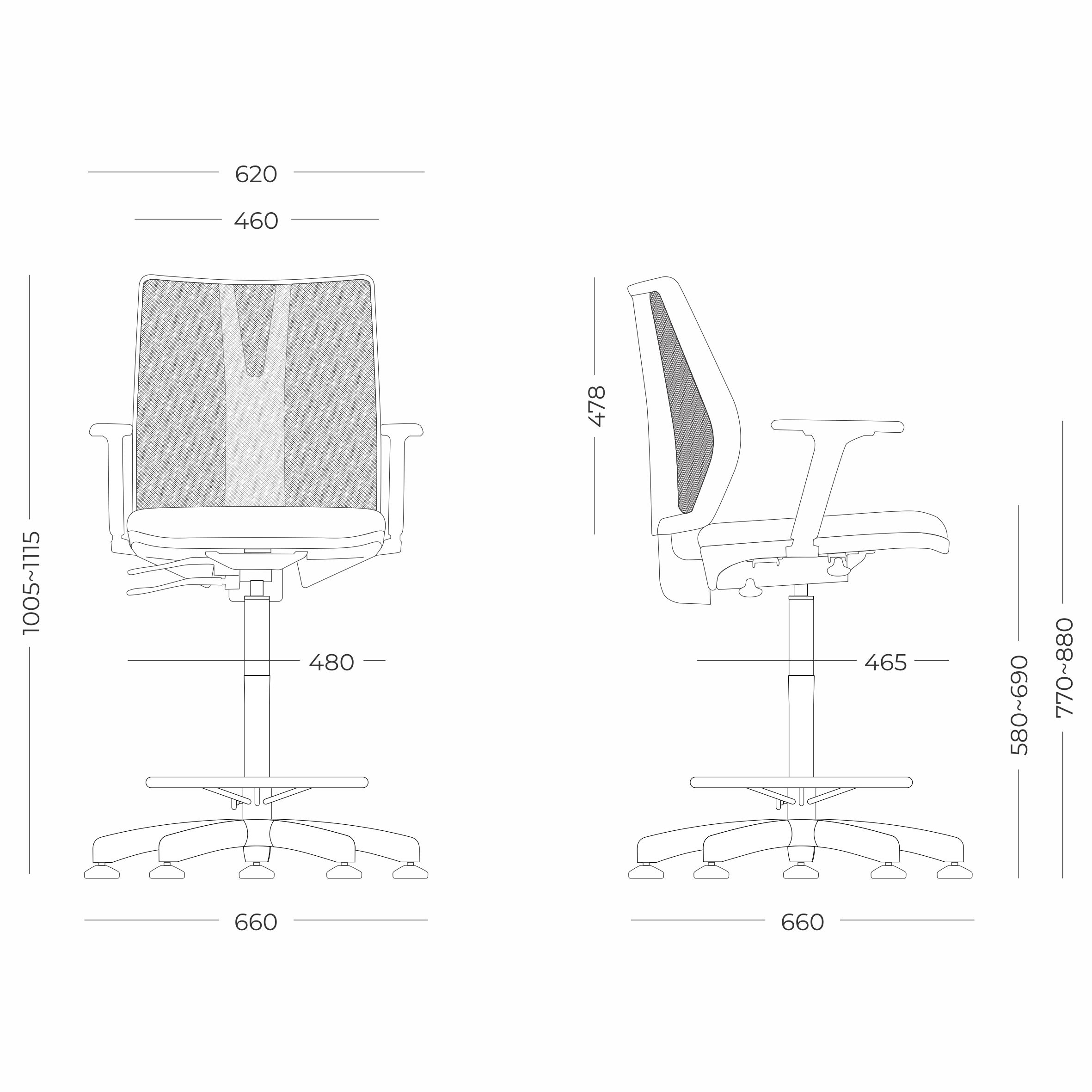 Braço com regulagem de altura, totalmente injetado em polímero de alta resistência.