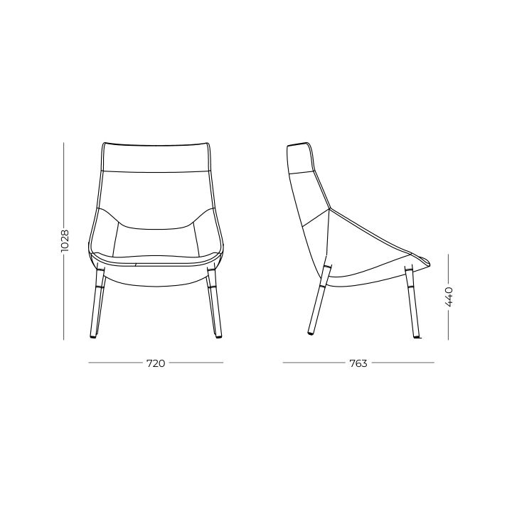 Corpo com espaldar alto composto por estrutura em aço e espuma injetada moldada de alta densidade e resiliência, com aplicação de revestimento a definir com costuras para evidenciar curvas e acabamento.