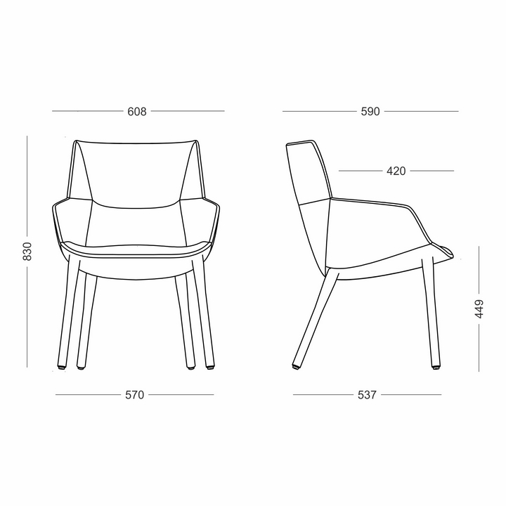 A poltrona combina design sofisticado e conforto, com estrutura em aço e espuma injetada de alta densidade para máxima durabilidade e ergonomia. versátil, está disponível com ou sem braços e oferece diversas opções de base: quatro pés em aço ou madeira fixa, base fixa com giro no eixo, alumínio trespolo ou giratória com rodízios.