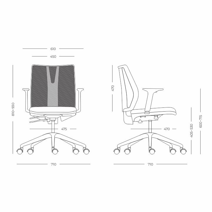 A cadeira Addit é versátil e possui desenho em linhas dinâmicas e singulares, conjunto de encosto em tela e assento com espuma de alta densidade, é muito confortável e adaptável ao corpo pelos seus diferenciais de projeto; encosto em tela dupla que permite troca térmica e é flexível para uma adaptação perfeita à coluna. Com espuma de assento e encosto injetada e indeformável, mecanismo Evolution (contato permanente), ajuste de altura e inclinação do encosto, ajuste de altura do assento, coluna a gás preta classe 3 com curso de 115 mm para base reta e arcada, Base reta metálica com capa e raio de 280mm, Rodízio duplo giro, nylon preto pista cinza (piso duro). Braço com ajuste de altura por botão e apoio de braço em polipropileno.