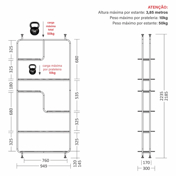 Estante Pix medida piso/teto de H= 2185 a 3835 mm