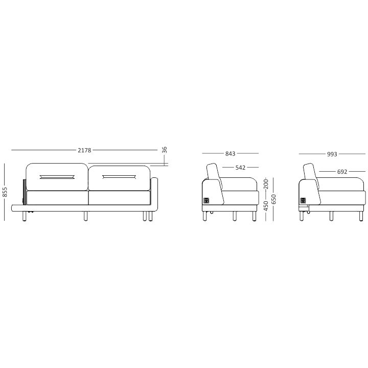Sofá estruturado em madeira com espuma injetada, revestido em tecido sintético antimicrobiano, permite a transformação em cama, deslocando o assento para frente através esforço feito no suporte para as mãos centralizado abaixo do assento.