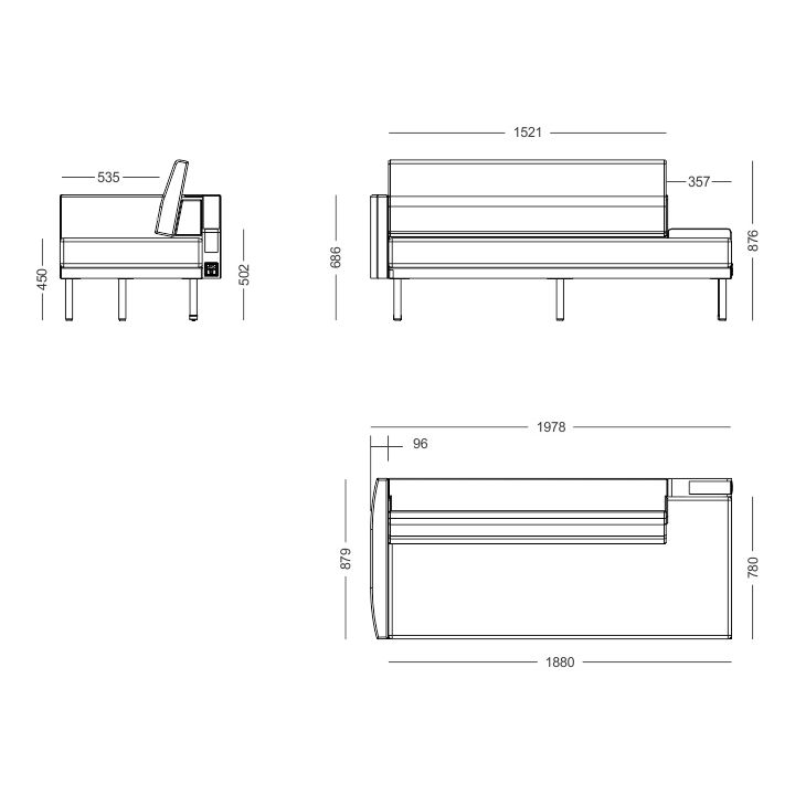 Medidas que permitem o descanso do usuário transformado o sofá em uma cama, esta tranformação feita é através de pistão pineumático que permite que o encosto do sofá seja remetido para cima, com ajuda de um pega mão central, deixando o espaço do assento livre como uma cama.