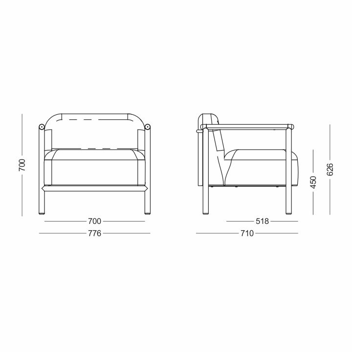 Projeto pode conter sofá de um lugar com encosto ou puff, sendo ambos fabricados com assento em madeira e espuma injetada macia. estes módulos são fixados a uma estrutura em aço em aço.