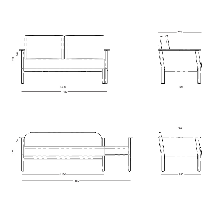 Sofá com estrutura interna em madeira reforçada com quadro de aço. assento e encosto estofados com espuma de alta densidade e revestimento em tecidos de diferentes texturas. pés e braços em madeira maciça fixados através de componentes de aço para maior resistência e durabilidade.