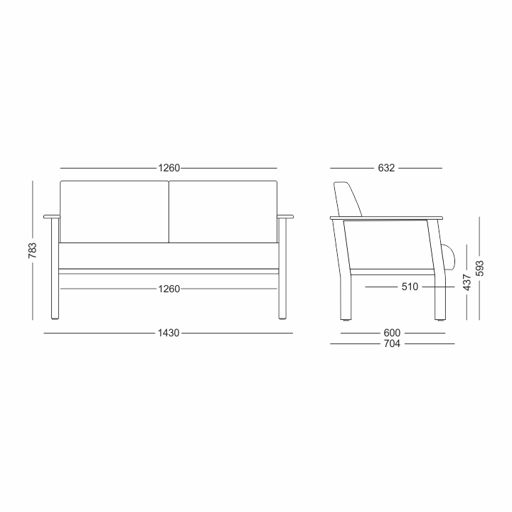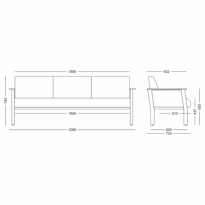 Encosto e assento confeccionados em espuma de alta densidade com percintas elásticas para proporcionar maior conforto ao usuário, possuíndo uma capacidade de 150kg por assento e revestimento com proteção antimicrobiana.