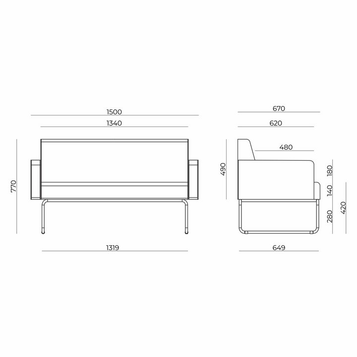 Descrição Técnica: Sofá modular composto de diversos conjuntos para área corporativas colaborativas :. Módulo Reto com encosto e sem encosto e canto ,pés em aço. Chassis compensados multilaminados para assento e encosto com espessura mínima de 10 mm. Espumas flexíveis de poliuretano, expandida, cuja densidade nominal é de 30 ± 5 kg/m3. Largura de 1340mm