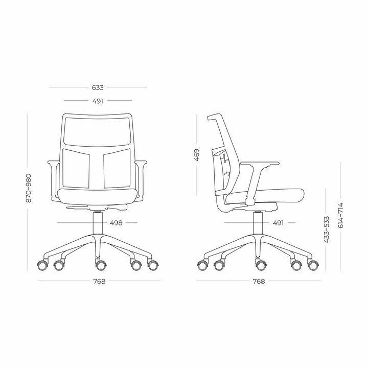 Assento em espuma injetada em poliuretano, com espessura de 35mm, possui contra capa em polipropileno.