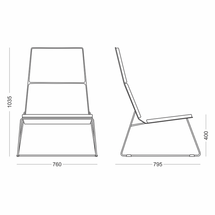 Poltrona com estrutura metálica e encosto alto estofado em dois módulos, oferecendo conforto e suporte ergonômico. mede 1035 mm de altura, 760 mm de largura e 795 mm de profundidade, com assento a 400 mm do chão. ideal para lounges e áreas de espera com visual moderno e leve.