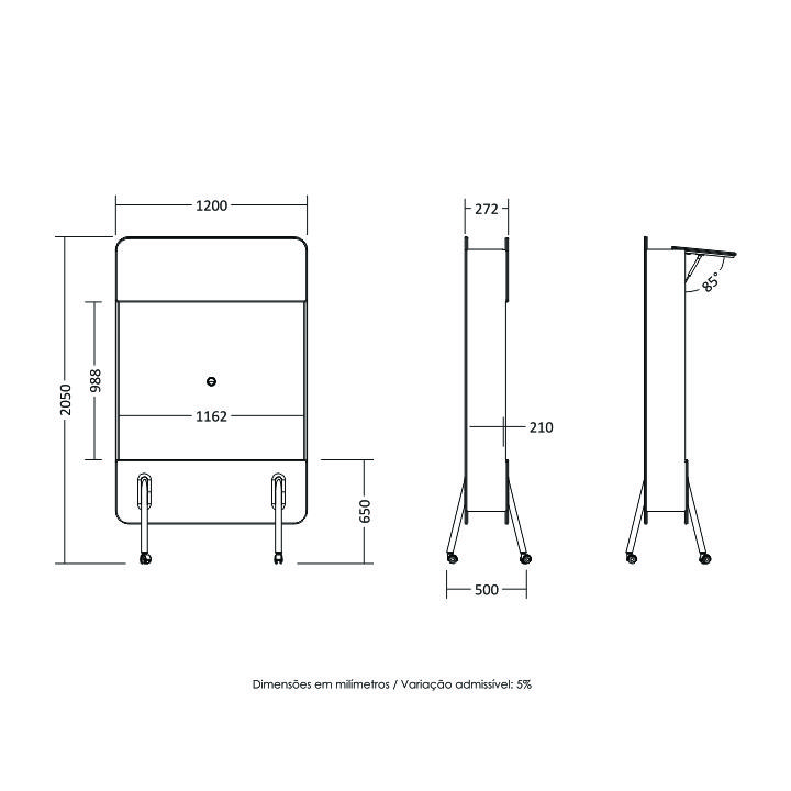Painel em madeira, com espuma laminada totalmente tapeçada. montado sobre rodízios giratórios com travas, possibilita mobilidade e estabilidade em diferentes ambientes. ideal para uso corporativo ou colaborativo.