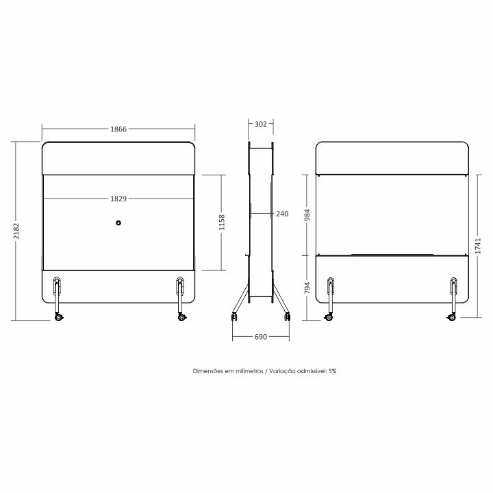 Conceito: Wall Float foi pensado para ambientes dinâmicos que pedem soluções versáteis e esteticamente leves. Seu design cria uma presença acolhedora, ao mesmo tempo em que oferece funcionalidade para suportar telas, dividir espaços ou organizar o ambiente. A sensação de privacidade sutil proporcionada pela estrutura em caixa favorece a concentração sem isolar completamente o usuário. Montado sobre rodízios discretos, ele permite fácil deslocamento e adaptação conforme a necessidade.