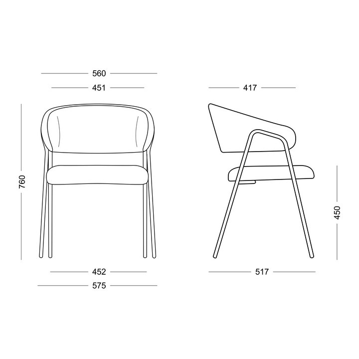 Assento e encosto estofados em espuma de alta densidade, proporcionando conforto ergonômico e suporte adequado. encosto envolvente com curvatura anatômica que acompanha as costas e oferece apoio lateral aos braços. estrutura tubular em aço com pintura eletrostática preta fosca, conferindo resistência, estabilidade e acabamento moderno. pés fixos com sapatas plásticas para proteção do piso e maior durabilidade.